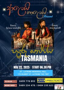 Alei Thalei Paduru Sajjaya – TASMANIA City: Hobart, Place: Devonport – TASMANIA Share: ආලෙයි තාලෙයි Present පැදුරු සාජ්ජය Tasmania ! 🎶🎤